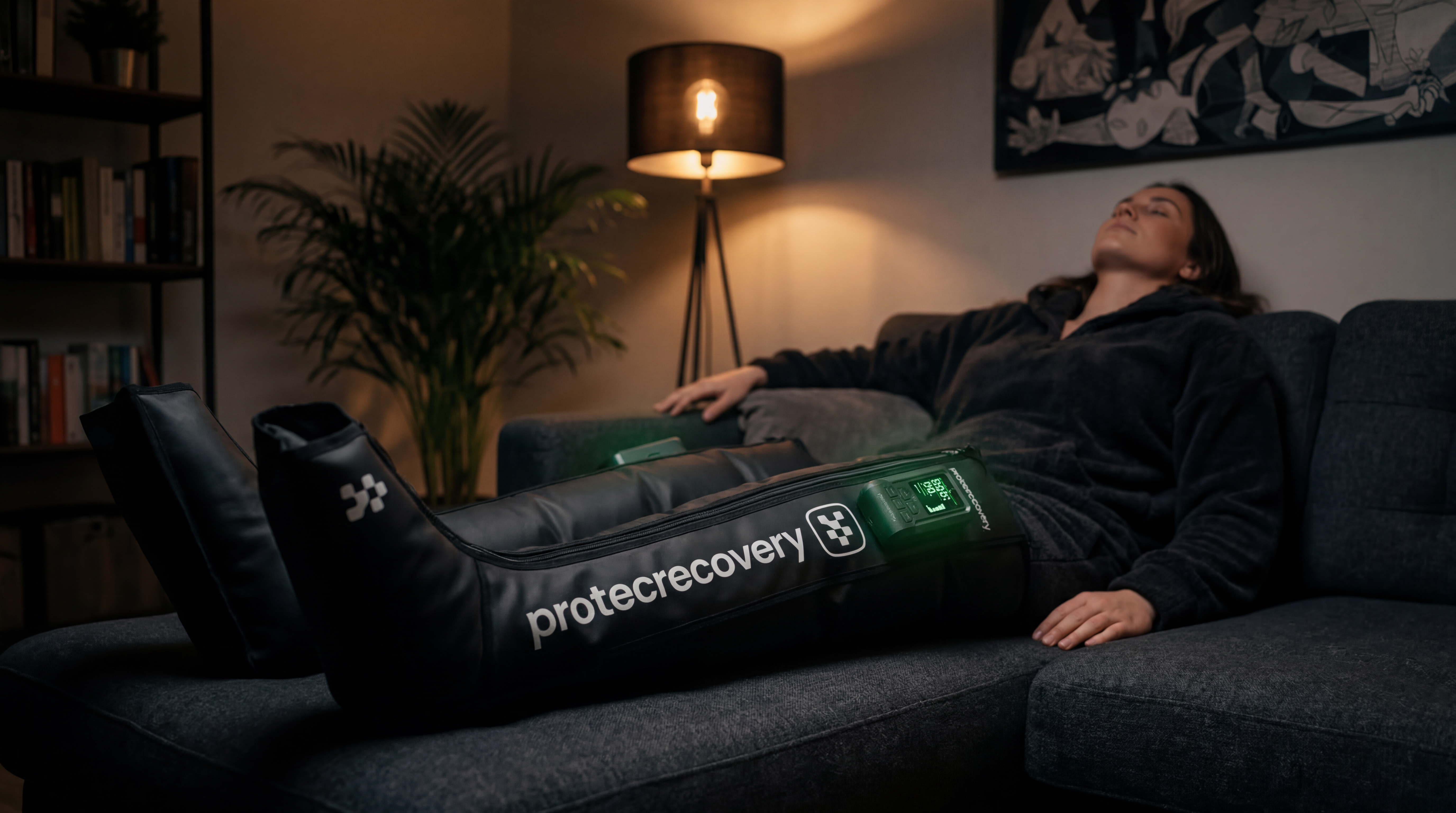 Five-chamber sequential compression at 67–165 mmHg. Wireless, app-connected, and clinically validated. The same pressure range physiotherapists use.