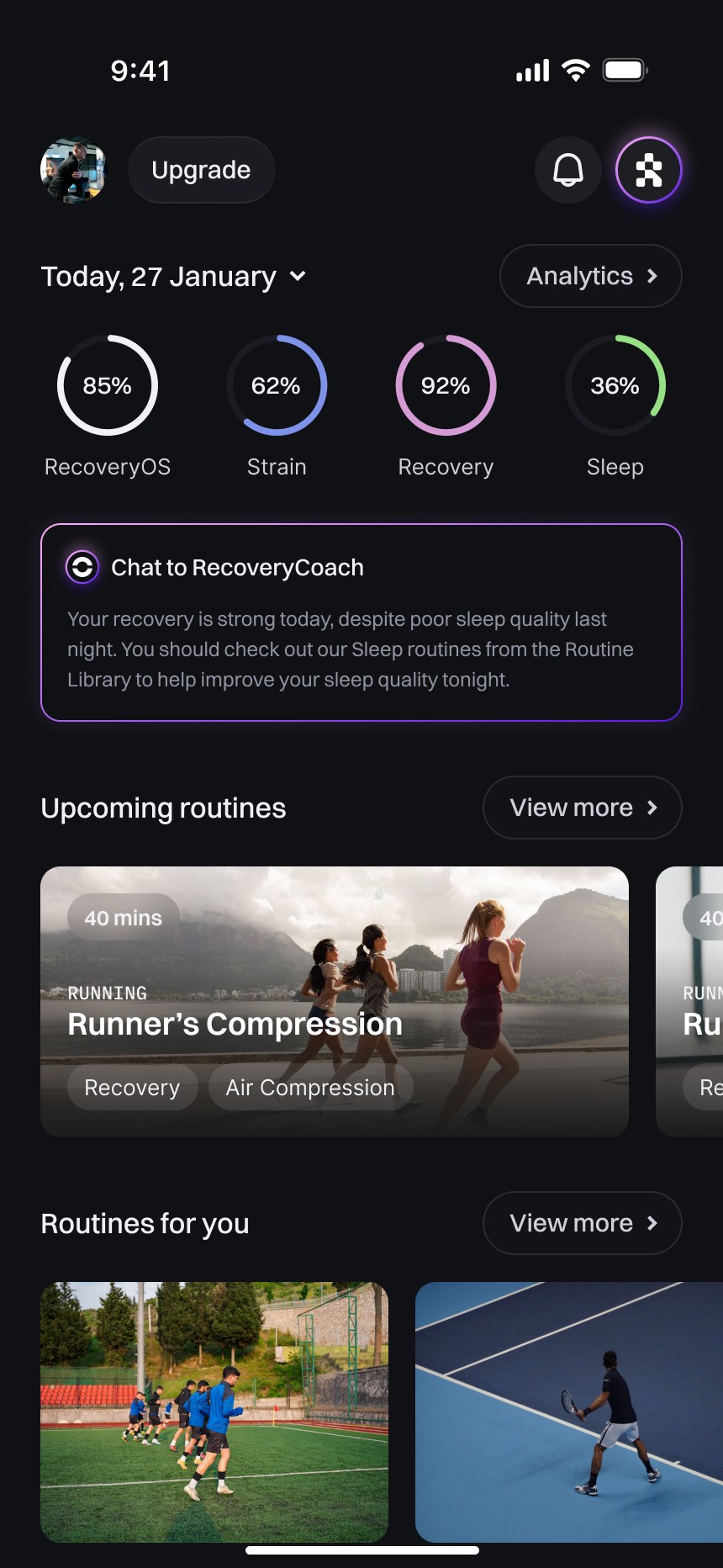 Our recovery routines and protocols have been curated and designed by the world's leading performance coaches and athletes, with our proprietary algorithms and machine learning models recommending the ones best suited to you, every day.