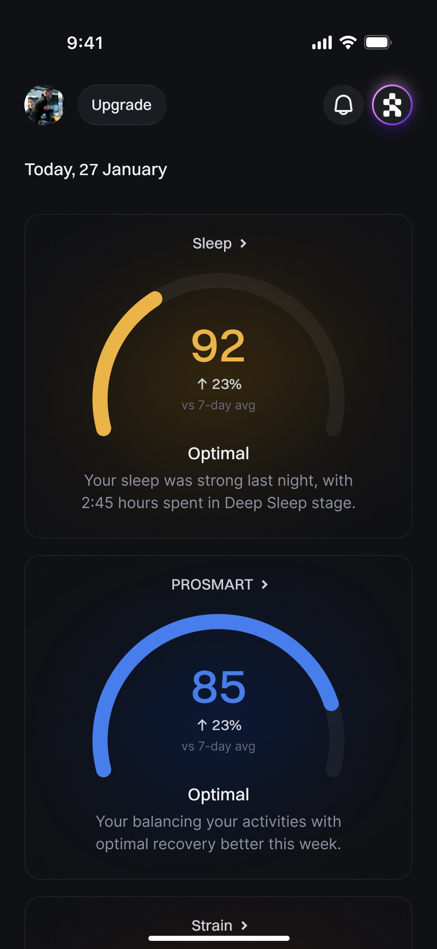 RecoveryCoach is a proprietary feature developed to enhance your performance and recovery by recommending protocols and routines, based on tailored insights on your wearable data.